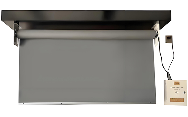 连接电源线和控制线,将西吉挡烟垂壁安装在支架上,并用螺丝固定。